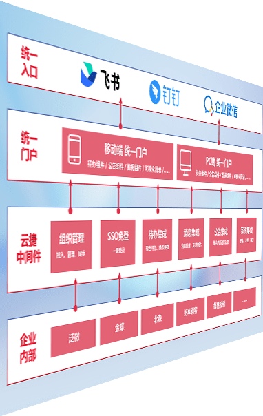 对协作平台提供支持服务,,支持企业应用与协作平台对接,,,包含组织同步、、、、消息集成、、待办集成等。。支持目前主流的协作平台:钉钉、、企微和飞书。。。。